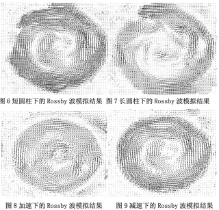 Rossby Wave is asort of planetary-scale wave with major influence in marine science and atmospheric science. It has long wavelength and propagates slowly. People can only study it through statistics from altimeter and other satellite remote sensing technology and lack intuition acknowledgement. This article is based on preceding experiments. We strive for some measures onimitating Rossby wave in the lab and testing oceanic eddy, as well as some experience on how toimitate Rossby wave more accurately. The experiment is performed on OUC earth rotation experiment table. Beta plane simulated variation on Coriolis parameter approximately by designing cone and square rotation tanks with several slopes. By controlling the rotation speed of the tank, we can imitate westward transmission process. We can also imitate it by placing different obstacles to create waves as well as changing slopes of cone to stimulate submarine topography. We observed the effect of different obstacles on formation and disappearing, motion curve and shape of Rossby wave. Staining and PIV method are adopted in the experiment to show shape and distributionof Rossby wave.