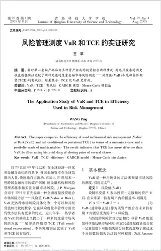 风险管理测度VaR和TCE的实证研究