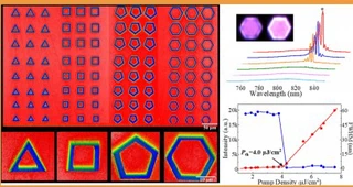 Organic−inorganic halide perovskites have excellent intrinsic properties, such as long carrier lifetime, high photoluminescence quantum yield, and high gain, in whispering gallery mode (WGM) cavities by facile vapor self-assembly or solution process, which make them competitive for high-performance microlasers. However, the performance of perovskite-based microlasers is severely limited by the fabrication of microcavities,which results in poor reproducibility and uncontrolled morphology. Herein, we explore a reproducible method which combined thermal co-evaporation with femtosecond (fs) laser direct writing for formamidinium lead iodide (FAPbI3) perovskite polygonshaped WGM microcavities. The microlasers pumped with the fs laser had a low threshold of 4.0−12.3 μJ/cm2 and narrow full width at half-maximum of 0.62−1.05 nm. Moreover, size- and shapedependent WGM lasing performances are also investigated systematically. The results prove that FAPbI3 polygonal microcavities can serve as promising WGM lasers and have great potential for practical optoelectronic applications.
